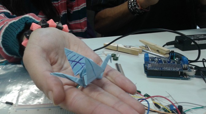 Con el objetivo de trabajar con hardware libre —específicamente con Arduino—, los integrantes de la iniciativa dictan un taller de armado de robots utilizando palitos de helado, sorbetes, cintas y toda clase de materiales de bajo costo y fácil acceso. Los resultados pueden apreciarse, a continuación, en el video «Robots con arduino en la Escuela Técnica 2 Vicente Pereda, Azul».